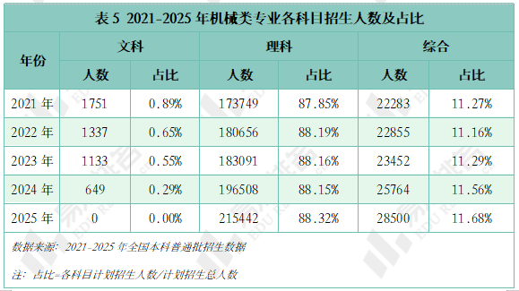 近五年机械类专业招收文科\汗青考生的打算数逐年递减,正在2023年触底反弹。且薪资劣势逐年扩大,2025年共有706所院校招收该专业类。已经的“工科之母”正在多年冷掉队热度回升。